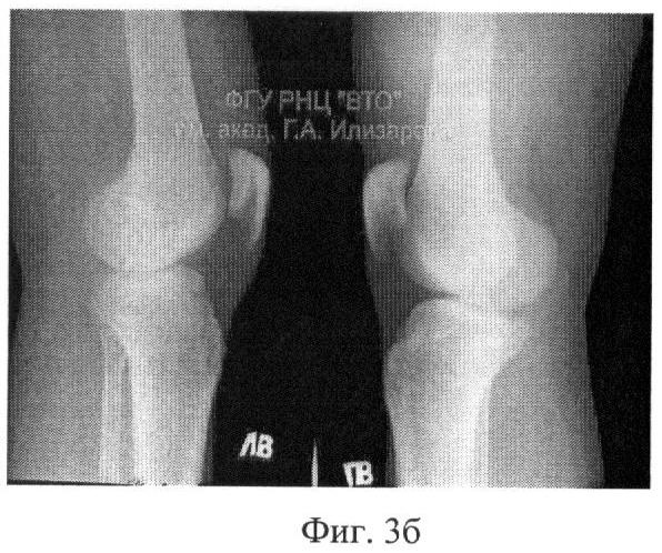 Фиг.3 – рентгенограмма коленного сустава после лечения; а – прямая проекция,