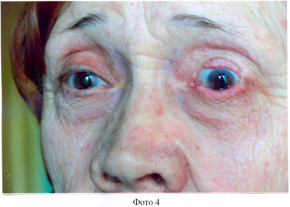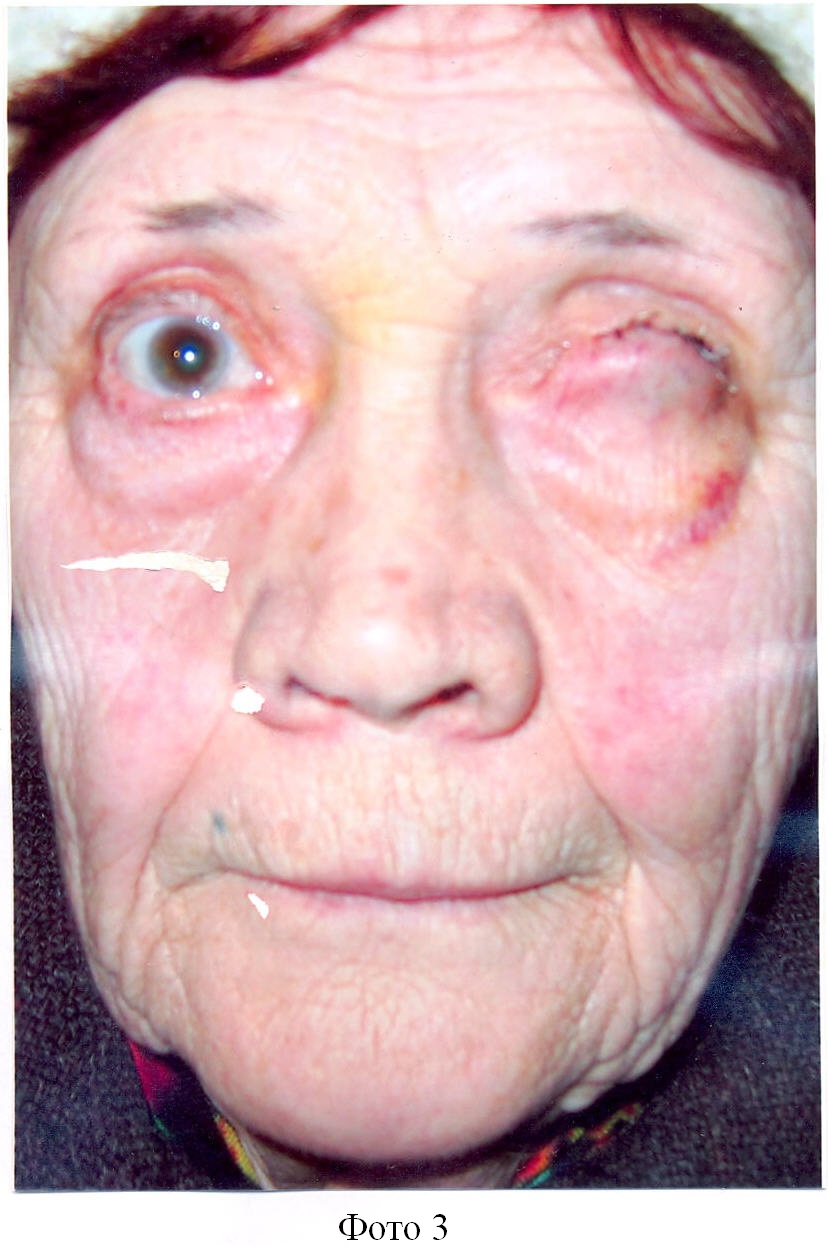 фото 3 – больная Ш. с блефарорафией, остатки тканей верхнего века сшиты с реберным краем нижнего века,