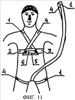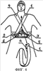 На фиг.1 представлен спасательный пояс по а.с. 1581329, на фиг.2-фиг.5 – способ его крепления (описан выше) на спасаемом человеке (последовательность действий), на фиг.2, фиг.6 – фиг.11, фиг.4, фиг.5 – последовательность действий по заявленному способу крепления.