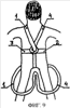 Указанная цель достигается тем, что крестообразно располагаемые на груди и пропускаемые через плечи ветви ремня с охватом поясного ремня на спине завязывают узлом, пропускают между ног вперед, охватывают ими бедра спереди и сзади на один оборот, выводят между ног и пропускают через верхний край пряжки на один оборот.