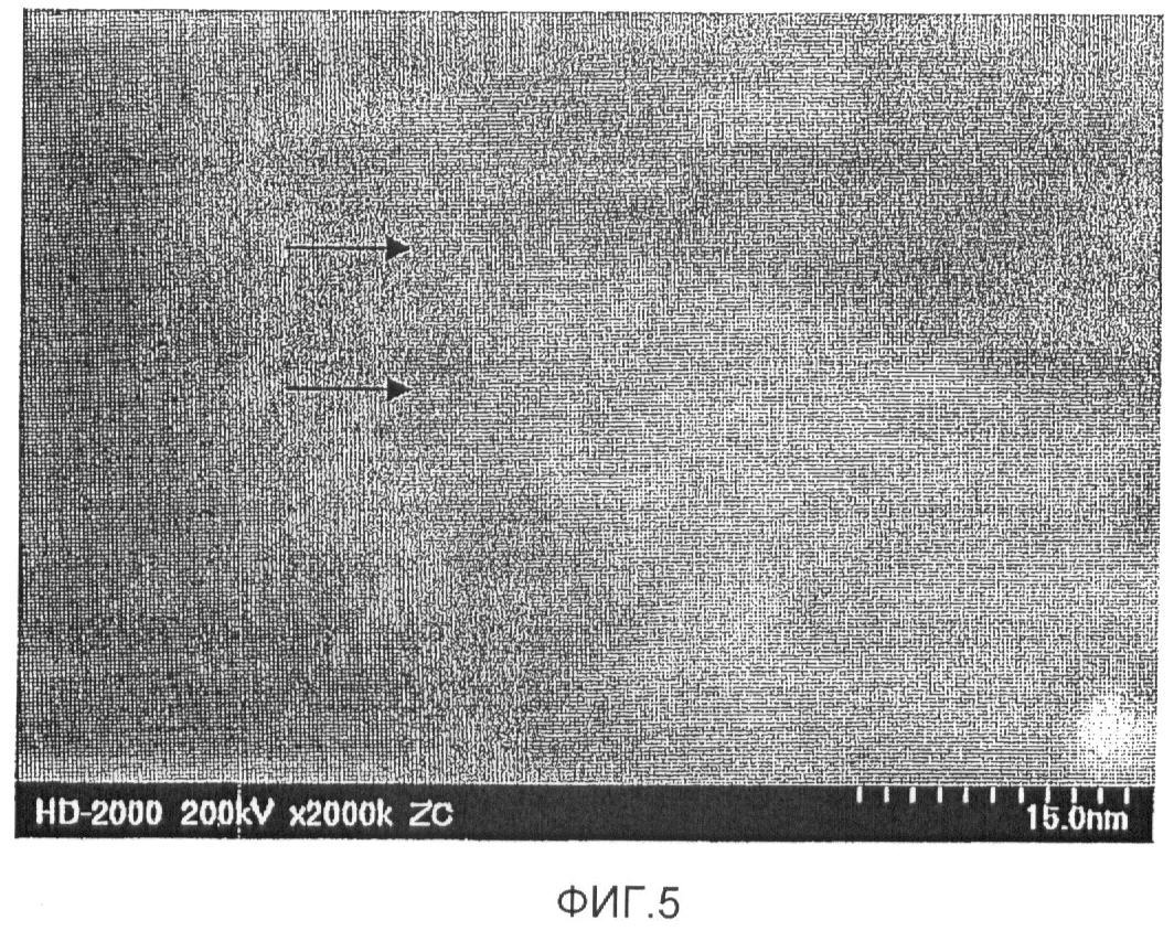 фиг.5 показывает ПЭМ фотографию, на которой наблюдается появление Pt на MgO, полученную в соответствии с Примером 2, и