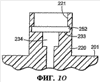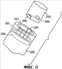 Еще в одной модификации (не показана на чертеже) выступ 680e может располагаться выше выступа 680d так, что бобышка 686 входит между выступами 680e, 680d, причем выступ 680e опять выполняет функции упора, ограничивающего осевое перемещение вставки 680 внутрь гнезда 621 путем взаимодействия с бобышкой 686. Альтернативно или дополнительно спиральный выступ 680d может иметь концевой ограничитель, подобный описанному выше, ограничивающий поворот вставки 680 относительно бобышки 686. Альтернативно промежуток между верхними и нижними поверхностями выступов 680d, 680e может быть существенно уменьшен с целью ограничения поворота вставки 680 относительно бобышки 686.