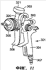 Если после распыления во вкладыше 309 осталась краска, ее можно временно хранить во вкладыше, закрыв открытый конец вкладыша 309 заглушкой (не показана). Затем эту заглушку можно снять и снова установить сборку вкладыша 309 и контейнера 308 на распылитель 301 для использования оставшейся краски.