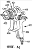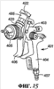 Указанные фланец 422 и зацепляющие элементы 416, 417 аналогичны деталям, показанным на чертежах 5 и 6, и с их помощью резервуар 402 может устанавливаться на распылителе 401 и сниматься с распылителя описанным ранее способом.