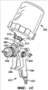 Как показано на чертежах, горлышко 1015 имеет цилиндрическую часть 1080а, имеющую спиральный выступ 1080d, предназначенный для взаимодействия с бобышкой 686 на корпусе распылителя 603. Указанная цилиндрическая часть 1080а ведет в имеющую внешнюю резьбу часть 1080g, которая свободно сажается во внешнюю часть канала 621а гнезда 621 и, в свою очередь, ведет в цилиндрическую часть 1080b, которая помещается во внутреннюю часть канала 621b гнезда 621.