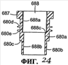 Теперь обратимся к фиг.21-24, на которых представлена отлитая из пластмассы вставка 680, например, нейлоновая вставка 680, устанавливаемая в гнездо 621 для адаптации гнезда 621 для использования резьбового соединителя (не показан) для присоединения резервуара с краской. Указанный резьбовой соединитель может являться неотъемной деталью резервуара или может быть отдельной деталью, к которой разъемно прикрепляется указанный резервуар.