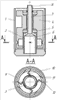 На чертеже схематически изображен вибратор в разрезе с поперечным сечением на уровне тангенциальных сопел и каналов.