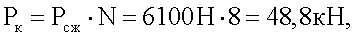 3) определяют усилие сжатия комплекта пружин: