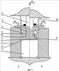 Приводной пуансон 8, закрепленный на подвижной траверсе (не обозначена) пресса, размещают над заготовкой 2 в упомянутой ступени 5 отверстия кольцевого дорна. К кольцевому дорну 6 прикладывается в осевом направлении усилие Pk, прижимающее его к контейнеру и столу пресса.