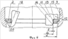 фиг.4 – взаимодействие ребер и рычагов с торцами нирезистового кольца (разрез Б-Б на фиг.3);