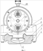 Внутри диска 9, крышки 11 и колеса 1 расположена камера, замкнутая прокладками 12 и сальниковыми набивками 13 и 14. В камере расположены планетарные зубчатые колеса 15 и 16, закрепленные на осях 17, 18 с подшипниками 19, 20, 21, 22.