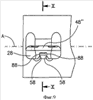 Нижняя поверхность 32 режущей пластины 28 включает две части 52 и центрально расположенный между ними направляющий паз 54. Две части 52 нижней поверхности выполнены, как правило, плоскими, лежащими в одной плоскости, параллельными к главной части 46 верхней поверхности и расположенными с разных сторон от вспомогательной средней плоскости Р2. Направляющий паз 54 проходит внутрь от частей 52 нижней поверхности в направлении к главной части 46 верхней поверхности, расположен параллельно к вспомогательной средней плоскости Р2 и имеет продольную ось В, лежащую во вспомогательной средней плоскости Р2.