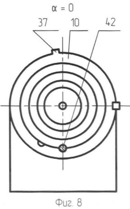 По окончании растачивания промежуточного отверстия 32 копирный палец 36 в очередной раз оказывается против копировального паза 37 (на его наклонном участке 38 на фиг.10 так, что и при движении гильзы 7 вперед (на холостом ходу) входит в него.