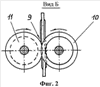 На фиг.1 представлена схема устройства для разрезания плоских композиционных изделий кольцевой формы – боковины, покрышки, главный вид и вид сверху; на фиг.2 – вид Б на фиг.1.