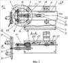 Устройство для разрезания плоских композиционных изделий кольцевой формы (далее – устройство) содержит станину 1, на которой смонтировано с возможностью возвратно-поступательного движения подающее устройство 2, опирающееся на два нижних свободно вращающихся ролика 3 и 4 с ребордами и удерживаемое от качания в вертикальной плоскости двумя верхними роликами 5 и 6, также снабженными ребордами, причем ролик 6 выполнен в виде зубчатой шестерни, находящейся в зацеплении с зубчатой рейкой 7. На корпусе подающего устройства 2 установлено не менее трех свободно вращающихся на своих осях фигурных роликов 8, причем оси двух фигурных роликов, наиболее близко расположенных к зоне резания 9, образованной дисковым ножом 10 и опорным роликом 11 с кольцевой выемкой 12, крепятся в пазах 13 корпуса подающего устройства 2 и могут сближаться между собой и раздвигаться в зависимости от типоразмера разрезаемой боковины 14, а ось одного (или нескольких) фигурного ролика 15 закреплена на ползуне 16 с возможностью удаления ролика 15 от зоны резания 9 или приближения к ней. Для автоматического удаления фигурного ролика 15 от зоны резания 9 служит пружина 17, а для приближения фигурного ролика 15 к зоне резания 9 (для обеспечения возможности снятия разрезанной и надевания очередной боковины) предусмотрен упор 18, закрепленный на станине 1 с возможностью его настройки на требуемый типоразмер разрезаемых боковин 14. Ползун 16 размещен в пазу 19 корпуса подающего устройства 2 с возможностью перемещения относительно паза 19 либо под действием пружины 17, либо под воздействием упора 18 (в зависимости от направления перемещения подающего устройства). С этой целью упор 18 входит в паз 19 корпуса подающего устройства 2 с возможностью их взаимного перемещения вдоль паза 19. Для останова подающего устройства 2 в крайних положениях служат конечные выключатели 20, закрепленные на станине 1, и кулачки 21, устанавливаемые в нужных положениях на корпусе подающего устройства 2.