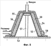 На Фиг.3 и 4 схематически представлены варианты осуществления формы для изготовления диффузора сопла ракетного двигателя из нежесткой волокнистой заготовки.