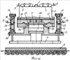 Пресс для листовой штамповки снабжен лебедкой с механизмом ее привода, блоками и тросом (на фиг.3 лебедка не показана), связанным с проушинами 1, выполненными на верхней платформе 2, стальными плитами 3, 4, упругим материалом 5 в виде слоя толщиной 1-500 мм и плунжерами 6, верхняя платформа 2 соединена с нижней стороны посредством болтов со штампом-матрицей 7 и с нижней платформой 8, которая с нижней стороны выполнена не более чем с 1000 цилиндрическими полостями, расположенными не более чем в 30 параллельных рядов, а с верхней стороны – с полостью 9, в которой установлены стальная плита 10 и слой сыпучего материала, например песка, толщиной 1-1000 мм, плунжеры 6, соединенные нижней частью с другой стальной плитой 3, расположены в цилиндрических полостях нижней платформы с опорой с верхней стороны на стальную плиту 10, расположенную в полости нижней платформы 8, и слой сыпучего материала и с возможностью деформирования в штампе-матрице 11 при перемещении верхней и нижней платформ 2, 8 и штампа-матрицы 11 вниз и удара по слою упругого материала 5, стальной плите 4, слою песка или пескогравия толщиной 0,001-10 м и породе 1-10 листов 12 с размещением между деформируемыми листами, а также между верхним из них и поверхностью штампа-матрицы слоя смазки.