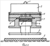 Пресс для листовой штамповки снабжен лебедкой с механизмом ее привода, блоками и тросом (на фиг.5 трос, блоки и лебедка не показаны), связанным с проушинами 1, выполненными на верхней платформе 2, стальными плитами 3, 4, одна из которых соединена болтами с нижней частью плунжеров 5, и упругим материалом 6 в виде слоя толщиной 1-500 мм и слоя толщиной 1-1000 мм, верхняя платформа 2 соединена с нижней стороны посредством болтов со штампом-матрицей 7 и с нижней платформой 8, которая с нижней стороны выполнена с цилиндрическими полостями, а в верхней части – полостью, в которой установлены другая стальная плита 9 и слой упругого материала 10 толщиной 1-1000 мм, а плунжеры 5 расположены в цилиндрических полостях нижней платформы с опорой с верхней стороны на установленные в полости нижней платформы 8 стальную плиту 9 и слой упругого материала 10 толщиной 1-1000 мм и с возможностью деформирования листа 11 в штампе-матрице 7 при перемещении верхней и нижней платформ 2, 8 и штампа-матрицы 7 вниз и удара по слою упругого материала толщиной 1-500 мм, стальной плите 4 и породе.