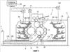 Таким образом, согласно настоящему варианту выполнения, зубчатая передача формных цилиндров 9, 10 приводится оснащенным кодирующим устройством вращающимся электродвигателем 21 независимо от зубчатой передачи других цилиндров, таких как обтянутый резиновым полотном печатный цилиндр 7 и офсетный цилиндр 8, как указано выше. Таким действием предотвращается относительное перемещение между обтянутым резиновым полотном печатным цилиндром 7 и формным цилиндром 9.