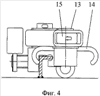Штанга 4 имеет возможность разворота в горизонтальной плоскости относительно наружной втулки 9, расположения в нерабочем положении вдоль наружной направляющей 7 и фиксации в этом положении с сохранением горизонтальности. Для этого внутренний конец штанги снабжен жестко закрепленным снизу сдвоенным спорно-фиксирующим крюком 14 (фиг.4) с боковыми зацепами, перпендикулярными штанге, при этом основание крюка имеет возможность опирания на пол транспортного средства, а один из зацепов в нерабочем положении штанги – взаимодействия снаружи с вертикальной частью направляющей 7.