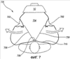 На чертеже, изображенном на фиг.7, можно видеть, что он иллюстрирует альтернативный вариант воплощения воздушной подушки 700 безопасности. Воздушная подушка 700 безопасности включает в себя два симметричных затягивающих патрубка 702, которые могут быть выполнены так, как описано выше. Затягивающие патрубки 702 полностью затягиваются в полость 704 воздушной подушки безопасности. Используется скорее одиночный затягивающий кордный шнур 706, чем затягивающие кордные шнуры, соответствующие каждому затягивающему патрубку 702. Затягивающий кордный шнур 706 сопряжен или взаимодействует с каждым затягивающим патрубком 702 тем же самым способом, который описан ранее. Затягивающий кордный шнур 706 проходит через петлю 708 кордного шнура, которая присоединена к внутренней поверхности 710. Петля 708 кордного шнура может образовываться из тканого материала, подобного или идентичного тому, который использован для изготовления воздушной подушки 700 безопасности. Затягивающий кордный шнур 706 может свободно проходить через петлю 708 и поэтому является «плавающим» затягивающим кордным шнуром. При альтернативном варианте воплощения затягивающий кордный шнур 706 может располагаться на наружной стороне воздушной подушки безопасности и проходить через петлю 708 кордного шнура, связанную с наружной поверхностью воздушной подушки 700 безопасности. При любом варианте воплощения раскрывающаяся воздушная подушка безопасности туго натягивает затягивающий кордный шнур 706, и происходит перекрытие закрывающих патрубков 702.