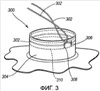 Обращая внимание на чертеж, изображенный на фиг.3, можно видеть, что на нем показан альтернативный вариант воплощения затягивающего патрубка 300, при котором затягивающий кордный шнур 302 образует петлю вокруг большей части периметра 304 затягивающего патрубка. Затягивающий патрубок 300 имеет первое и второе втулочные отверстия 306, 308, которые сообщены со втулкой 310, образованной внутри затягивающего патрубка 300. Затягивающий кордный шнур 302 входит в первое втулочное отверстие 306, пропускается вдоль втулки 310 и выходит из второго втулочного отверстия 308.