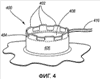 Обращая внимание на чертеж, изображенный на фиг.4, можно видеть, что на нем показан альтернативный вариант воплощения затягивающего патрубка 400, при котором затягивающий патрубок 400 включает в себя множество затягивающих петель 402. Затягивающие петли 402 могут располагаться на периферии 404, как это показано, либо на внутренней, либо на наружной поверхности 406, 408 затягивающего патрубка 400. Затягивающий кордный шнур 410 проходит через затягивающие петли 402, благодаря чему он способен, как требуется, ограничивать затягивающий патрубок 400.