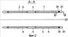 Натяжение тросов осуществляют с помощью натяжных устройств 21, 22. Для натяжения тросов снимают носовые обтекатели 23 и 24 с труб 2, 3, вывернув винты 39, и перемещают шкив 10(19) вдоль стержня 25, вращая втулку 35 ключом за лыски 38. Втулка 35, взаимодействуя с резьбой стержня 25, перемещается вдоль него и с помощью вертлюга двигает каретку 27 с блоком 10 и тросом 9(7), натягивая его.