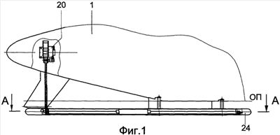 Закрепление стержня в обтекателе на торцевой переборке с эксцентриситетом относительно продольной оси трубы и обтекателя позволяет свободно разместить каретку с носовым блоком и тросом на стержне в обтекателе вдоль трубы, а также обеспечить расположение троса по центру трубы, что способствует улучшению эксплуатационных характеристик ПА.