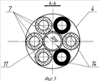 – ГГ (Фиг.3) катапультного устройства оснащен многошашечным зарядом ТРТ из быстрогорящего баллиститного топлива, включающим 4-канальные шашки всестороннего горения с размерами: наружный диаметр – 7,9 мм, диаметр канала – 4,3 мм, длина – 32 мм