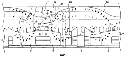 – Фиг.2 представляет собой схематический вид в частичном поперечном разрезе фрагмента пассажирского салона воздушного судна в соответствии с предлагаемым изобретением.