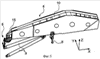 В целом устройство 34 крепления содержит вильчатую опору 36, называемую охватывающей вильчатой опорой и образованную передней проушиной 36а и задней проушиной 36b, между которыми заходит нижняя вершина 30 сцепки 20, а также палец 44, называемый соединительным пальцем и проходящий через эту сцепку 20, а также через обе проушины 36а, 36b. В этой связи следует отметить, что соединительный палец 44, расположенный вдоль оси 40, не обязательно проходит через проушины 36а, 36b насквозь, а заходит, по меньшей мере, частично, в каждую из этих проушин.
