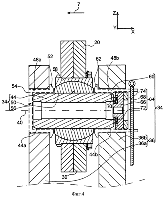 Фиг.4 – вид в разрезе части переднего узла подвески двигателя, показанного на фиг.2 и 3.