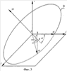 на фиг.3 – чертеж, поясняющий геометрию положение луча прожектора при его наклонном вращении.