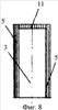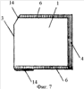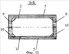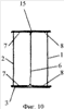 На фиг.9 упаковка объемная герметичная состоит из четырех стенок, две из которых 1-2 выполнены, например, из термосвариваемой пленки, а две другие, например 3 и 15, выполнены из бумаги, соединение стенок производится термосварочными, и/или сшивными, и/или клеевыми швами, или одна из стенок выполнена из пленки, вторая из ткани, третья из бумаги, а четвертая из картона, при этом применяются сшивные и/или клеевые швы. Опорной поверхностью является стенка 3, стенка 15 расположена параллельно стенке 3, а стенки 1 и 2 расположены вертикально относительно плоскости – упаковка расположена горизонтально.