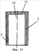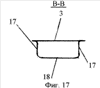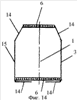 На фиг.14 упаковка объемная герметичная состоит из четырех стенок, две из которых 3 и 15 выполнены, например, из бумаги, а стенки 1 и 2 выполнены из термосвариваемой пленки. Опорной поверхностью являются нижние части всех четырех стенок 1, 2, 3 и 15 – упаковка расположена вертикально.