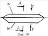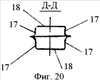 Упаковки, изображенные на фиг.16-20, выполнены из двух гибких материалов. На фиг.16-18 объем, образованный гибкими материалами, ограничен двумя стенками: 16 и плоской стенкой 3, стенки соединены поперечными 11 и продольными 5 швами по периметру каждой стенки. Стенки 3 и 16 установлены напротив друг друга, серединная часть 18 стенки 16 параллельна плоской стенке 3, а крайние части 17 стенки 16 развернуты навстречу друг другу, края стенок соединены поперечными 11 и продольными 5 швами, при этом на поверхности стенки 16 имеются защипы – складочки 12 у поперечных швов, ширина которых равна ширине поперечных швов. Швы могут быть термосварными, клеевыми, сшитыми или выполненными любыми способами, в качестве гибких материалов используются термосвариваемые материалы: и/или термопленки, и/или комбинированные многослойные пленки, и/или нетканое полотно, и/или ламинированные бумага и картон, а также и/или бумага, и/или ткань, и/или картон.
