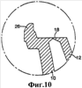 Часть 14, представляющая собой основание, также включает в себя выступающий фланец 38 над кольцевым выступом 36, как показано на фиг.7.