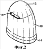 Как показано на фиг.3-6, наружная периферия части 14, представляющей собой основание, содержит внутреннюю стенку 30 и наружную стенку 32, образующие паз 40. Внутренняя и наружная стенки 30/32 образуют средство укупоривания отверстия вместе с нижней частью корпусной части 10. Нижняя часть корпусной части 10, которая образует герметичное соединение с внутренней стенкой 30, является более широкой, чем паз 40, и, таким образом, обеспечивает уплотнение (герметизацию) посредством натяга. Внутренняя стенка 30 имеет верхний сужающийся участок, имеющий по существу вертикальную внутреннюю поверхность, при этом наклонный участок имеется на ее наружной поверхности для направления корпусной части 10 в паз. Кроме того, основание внутренней стенки изгибается внутрь у ее основания для придания большей прочности. Натяг будет больше, чем натяг при обычной конструкции с параллельными боковыми стенками, в результате наличия изогнутой внутренней стенки 30.