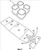 Предпочтительно, первая и вторая опорные стенки сгибаются автоматически вследствие введения перемычки 114 в промежуток между соседними изделиями А. Для этого ширина опорных стенок 138, 140 в копланарном состоянии больше расстояния между соседними горшочками. И в этом случае упругость, присущая согнутому картону, обеспечивает, что между опорными стенками 138, 140 и изделиями поддерживается плотная посадка.
