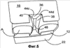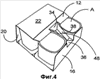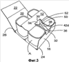Клиновые панели 42а и 42b по линии сгиба 46а шарнирно соединены с концами первой и второй опорных панелей 38 и 40 для поддерживания изделий. Кроме того, клиновые панели 42c и 42d по линии сгиба 46b шарнирно соединены с противоположными концами первой и второй опорных панелей 38 и 40.