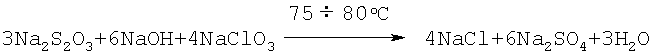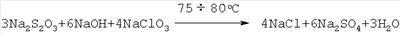 Недостатками указанных способов являются получение окрашенного продукта, загрязнение готового продукта из-за необходимости использования значительных количеств восстановителей по сравнению со стехиометрией (в 6 раз), значительное время обработки и необходимость проведения ее при высокой температуре (~280°C), при которой начинается обширная коррозия никеля. Скорость реакции восстановления хлората натрия увеличивается при увеличении температуры обработки и уменьшается при увеличении концентрации гидроокиси натрия, что значительно снижает эффективность обработки и обуславливает наличие остаточных количеств хлората. При применении сахарозы, Даже при полном отсутствии хлоратов скорость коррозии никеля составляет 0,25 мм/год, и она резко возрастает с увеличением температуры до температуры плавления каустика. Коррозия собственно за счет раствора и расплава щелочи также приводит к снижению срока службы никелевого оборудования и ухудшению качества твердого каустика (потемнение и наличие значительных количеств никеля в продукте). Наиболее близким является способ очистки 50-70%-ного концентрированного раствора гидроокиси щелочного металла от хлората путем добавления восстановителя-сахарозы в количестве 0,25 моля на 1 моль хлората (0,76 г сахарозы на 1 г хлората) при выпаривании раствора в диапазоне температур 150-300°C (патент США Недостатками указанного способа являются получение окрашенного продукта, а также интенсивное вспенивание каустика в присутствии сахарозы, что значительно ухудшает режим работы выпарного аппарата, приводит к получению не полностью обезвоженного продукта, увеличению расхода тепла и снижению интенсивности процесса выпаривания, высокой коррозии оборудования. Задача изобретения – разработка способа получения гидроокиси натрия в твердом состоянии из водного раствора, содержащего хлораты, обеспечивающего длительный срок службы оборудования и получение продукта высшего качества. Технический результат – получение продукта высшего качества и обеспечение длительного срока службы оборудования достигается тем, что в способе получения гидроокиси натрия в твердом состоянии выпариванием водного раствора NaOH, содержащего хлорат натрия, включающем добавление восстановителя – сахарозы, в качестве восстановителя хлората натрия дополнительно используют тиосульфат натрия, процесс проводят в никелевом реакторе при ступенчатом повышении температуры от 70 до 340°С, при этом сначала в зону выпарки с температурой 70-100°С подают водный раствор тиосульфата натрия содержащий 60-75% тиосульфата натрия от стехиометрического количества по отношению к хлорату натрия, содержащемуся в исходном растворе, затем в зону выпарки с температурой 100°-340°C подают водный раствор сахарозы, содержащий 20-35% сахарозы от стехиометрического количества по отношению к хлорату натрия, содержащемуся в исходном растворе, и ингибитор коррозии – оксиэтилидендифосфоновую кислоту в количестве 0,0003-0,00045% от получаемой гидроокиси натрия. Химизм процесса разложения хлората натрия: C12H22O11+8NaClO3 Образующаяся в процессе реакции двуокись углерода вступает в реакцию карбонизации едкого натра: CO2+2NaOH Введение тиосульфата натрия в зону выпарки с температурой 70-100°С снижает содержание хлората натрия на 80%, и в зону выпарки с температурой более 100°С (где п