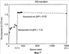 Концентрации лекарственных средств измеряли с помощью спектроскопии поглощения в оптической области, зависимости которого от времени приведены на фиг.7 и 8. Величина поглощения характеризует концентрацию лекарственных средств в растворе. Незаполненные оболочки не проявляют поглощения в этой спектральной области. При измерении поглощения лекарственных средств в отсутствие оболочек оно остается высоким в течение всего эксперимента. Таким образом, приведенные графики свидетельствуют о медленном высвобождении лекарственных средств из оболочек в желудке и гораздо более интенсивном – в кишечнике, то есть оболочки удерживают лекарства до тех пор, пока они не попадают в условия, благоприятные для высвобождения.