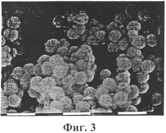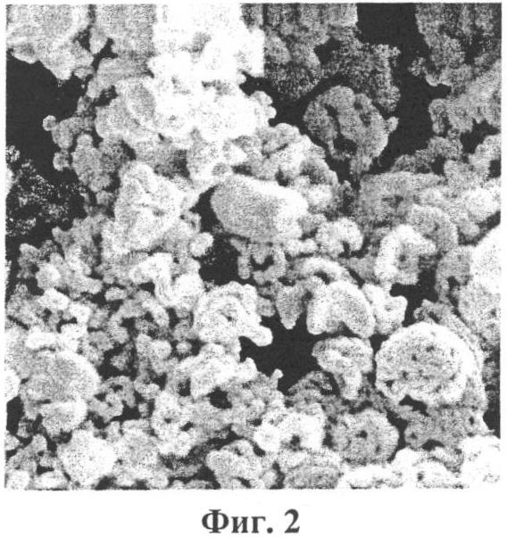 Снимок полученного таким образом оксида железа (Fe2O3), полученный с помощью сканирующего электронного микроскопа, приведен на фиг.2.