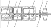 На чертеже представлено схематическое изображение способа двухстадийного упрочнения движущейся ленты флоат-стекла.