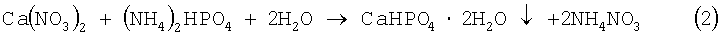 2-, которое трудно контролируется, так как идет по двум позициям, способствуя формированию Са-ДГАП двух типов А или Б, а чаще Са-ДГАП смешанного А-Б типа. Получение АФК возможно при снижении температуры синтеза ниже 20°С, уменьшении времени остаривания и использовании рН ниже 7. Основным недостатком АФК является то, что он образуется в виде гелеобразной труднофильтруемой массы, которая затем требует длительной сушки. Твердофазный синтез ТКФ может быть осуществлен из различных двухкомпонентных смесей, соотношение компонентов в которых обеспечивает мольное содержание кальция и фосфора, в компонентах которых отличается от такового в ТКФ. Примерами таких двухкомпонентных смесей являются смеси, состоящие из СаО и (NH4)2HPO4, СаСО3 и Н3РO4, Са(ОН)2 и СаНРO4, Са10(PO4)6(ОН)2 и Са2P2O7 [2]. Твердофазный синтез способствует формированию грубозернистых порошков и не может быть применен для подготовки активных к спеканию порошков, необходимых для получения керамики.