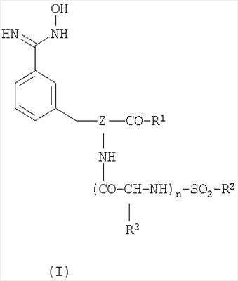 3. Способ по п.1, в котором производное 3-гидроксиамидинофенолаланина является производным N- -(2,4,6-триизопропил-фенилсульфонил-3-гидроксиамидино-(D,L)-фенилаланина, или его L-энантиомером.