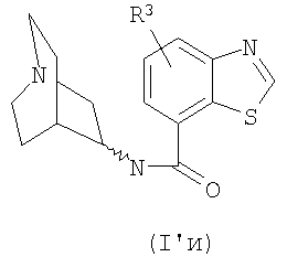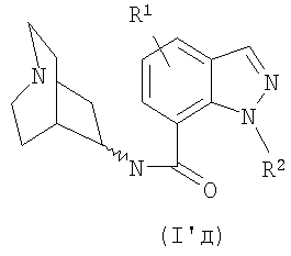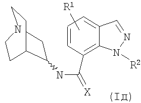 13. Соединение по п.1, где названное соединение выбирают из: N-(1-Азабицикло[2.2.2]окт-3-ил)-1Н-индазол-3-карбоксамид, N-((3R)-1-Азабицикло [2.2.2]окт-3-ил)-1Н-индазол-3-карбоксамид, N-((3S)-1-Азабицикло[2.2.2]окт-3-ил)-1Н-индазол-3-карбоксамид, N-((3R)-1-Аза-бицикло[2.2.2]окт-3-ил)бензотиазол-4-карбоксамид, N-((3S)-1-Аза-бицикло[2.2.2]окт-3-ил)бензотиазол-4-карбоксамид, N-((3R)-1-Азабицикло[2.2.2]окт-3-ил)-1Н-индазол-4-карбоксамид, N-((3S)-1-Азабицикло[2.2.2]окт-3-ил)-1Н-индазол-4-карбоксамид, N-(1Н-Индазол-4-у1)-1-азабицикло[2,2,2]окт-3-илкарбоксамид, N-((3R)-1-Аза-бицикло[2.2.2]окт-3-ил)бензотиазол-7-карбоксамид, N-((3S)-1-Аза-бицикло[2.2.2]окт-3-ил)бензотиазол-7-карбоксамид, N-((3R)-1-Азабицикло[2.2.2]окт-3-ил)-1Н-индазол-7-карбоксамид, N-((3S)-1-Азабицикло[2.2.2]окт-3-ил)-1Н-индазол-7-карбоксамид, N-((3S)-1-Азабицикло[2.2.2]окт-3-ил)-1Н-индазол-7-карбоксамид, и их физиологически приемлемых солей.