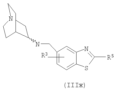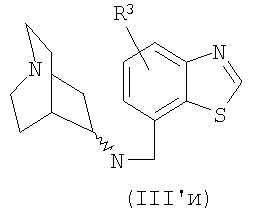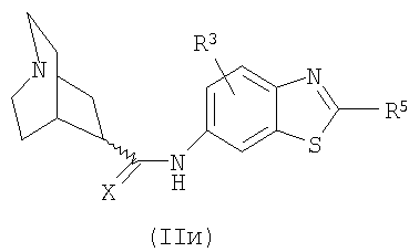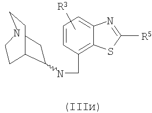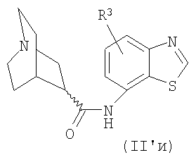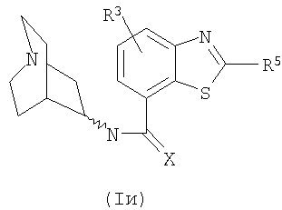 14. Соединение по п.1, где названное соединение выбирают из N-((3R)-1-Азабицикло[2.2.2]окт-3-ил)-N-(1Н-индазол-3-илметил)амин, N-((3R)-1-Азабицикло[2.2.2]окт-3-ил)-N-(1Н-индазол-3-илметил)амин, N-(1-Азабицикло[2.2.2]окт-3-ил)-N-(1Н-индазол-4-илметил)амин, Бензотиазол-4-карбоксамид, N-1-аза-бицикло[2.2.2]окт-3-ил, (R) Бензотиазол-4-карбоксамид, N-1-аза-бицикло[2.2.2]окт-3-ил, (S) Бензотиазол-4-карбоксамид, N-1-аза-бицикло[2.2.2]окт-3-ил, 1-Азабицикло[2.2.2]окт-3-илкарбоксамид, N-1Н-индазол-3-ил, (S) 1-Азабицикло[2.2.2]окт-3-илкарбоксамид, N-1H-индазол-3-ил, (R) 1-Азабицикло[2.2.2]окт-3-илкарбоксамид, N-1H-индазол-3-ил, (S) 1-Азабицикло[2.2.2]окт-3-илкарбоксамид, N-1Н-индазол-4-ил, (R) 1-Азабицикло[2.2.2]окт-3-илкарбоксамид, N-1Н-индазол-4-ил, 1-Азабицикло[2.2.2]окт-3-илкарбоксамид, N-1Н-индазол-7-ил, (S) 1-Азабицикло[2.2.2]окт-3-илкарбоксамид, N-1Н-индазол-7-ил, (R) 1-Азабицикло[2.2.2]окт-3-илкарбоксамид, N-1Н-индазол-7-ил, 1-Азабицикло[2.2.2]окт-3-илкарбоксамид, бензотиазол-4-ил, (S) 1-Азабицикло[2.2.2]окт-3-илкарбоксамид, бензотиазол-4-ил, (R) 1-Азабицикло[2.2.2]окт-3-илкарбоксамид, бензотиазол-4-ил, 1-Азабицикло[2.2.2]окт-3-илкарбоксамид, бензотиазол-7-ил, (S) 1-Азабицикло[2.2.2]окт-3-илкарбоксамид, бензотиазол-7-ил, (R) 1-Азабицикло[2.2.2]окт-3-илкарбоксамид, бензотиазол-7-ил, (S) (1-Азабицикло[2.2.2]окт-3-ил)-(1Н-индазол-3-илметил)амин, (R) (1-Азабицикло[2.2.2]окт-3-ил)-(1Н-индазол-3-илметил)амин, (S) (1-Азабицикло[2.2.2]окт-3-ил)-(1Н-индазол-4-илметил)амин, (R) (1-Азабицикло [2.2.2]окт-3-ил)-(1Н-индазол-4-илметил)амин, (1-Азабицикло[2.2.2]окт-3-ил)-(1Н-индазол-5-илметил)амин, (S) (1-Азабицикло[2.2.2]окт-3-ил)-(1Н-индазол-5-илметил)амин, (R) (1-Азабицикло[2.2.2]окт-3-ил)-(1Н-индазол-5-илметил)амин, (1-Азабицикло[2.2.2]окт-3-ил)-(1Н-индазол-6-илметил)амин, (S) (1-Азабицикло [2.2.2]окт-3-ил)-(1Н-индазол-6-илметил)амин, (R) (1-Азабицикло[2.2.2]окт-3-ил)-(1Н-индазол-6-илметил)амин, (1-Азабицикло[2.2.2]окт-3-ил)-(1Н-индазол-7-илметил)амин, (S) (1-Азабицикло[2.2.2]окт-3-ил)-(1Н-индазол-7-илметил)амин, (R) (1-Азабицикло[2.2.2]окт-3-ил)-(1Н-индазол-7-илметил)амин, (1-Азабицикло[2.2.2]окт-3-ил)-(бензотиазол-4-илметил)амин, (S) (1-Азабицикло[2.2.2]окт-3-ил)-(бензотиазол-4-илметил)амин, (R) (1-Азабицикло[2.2.2]окт-3-ил)-(бензотиазол-4-илметил)амин, (1-Азабицикло[2.2.2]окт-3-ил)-(бензотиазол-5-илметил)амин, (S) (1-Азабицикло[2.2.2]окт-3-ил)-(бензотиазол-5-илметил)амин, (R) (1-Азабицикло[2.2.2]окт-3-ил)-(бензотиазол-5-илметил)амин, (1-Азабицикло[2.2.2]окт-3-ил)-(бензотиазол-6-илметил)амин, (S) (1-Азабицикло[2.2.2]окт-3-ил)-(бензотиазол-6-илметил)амин, (R) (1-Азабицикло[2.2.2]окт-3-ил)-(бензотиазол-6-илметил)амин, (1-Азабицикло[2.2.2]окт-3-ил)-(бензотиазол-7-илметил)амин, (S) (1-Азабицикло[2.2.2]окт-3-ил)-(бензотиазол-7-илметил)амин, (R) (1-Азабицикло[2.2.2]окт-3-ил)-(бензотиазол-7-илметил)амин, и их физиологически приемлемых солей.