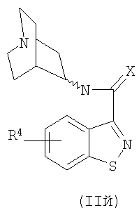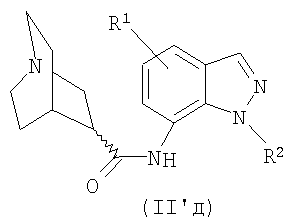 16. Соединение согласно п.15, где указанное соединение выбрано из группы, включающей Гидрохлорид N-((3R)-1-Азабицикло[2.2.2]окт-3-ил)бензо[d]изотиазол-3-карбоксамида, Гидрохлорид N-((3S)-1-Азабицикло[2.2.2]окт-3-ил)бензо[d]изотиазол-3-карбоксамида, Гидрохлорид N-(1-Азабицикло[2.2.2]окт-3-ил)-1Н-индазол-3-карбоксамида, N-((3R)-1-Азабицикло[2.2.2]окт-3-ил)-1Н-индазол-3-карбоксамид гидрохлорид, N-((3S)-1-Азабицикло[2.2.2]окт-3-ил)-1Н-индазол-3-карбоксамид гидрохлорид, N-((3R)-1-Азабицикло[2.2.2]окт-3-ил)-5-(метокси)бензо[d]изотиазол-3-карбоксамид гидроформиат, N-((3R)-1-Азабицикло[2.2.2]окт-3-ил)-5-(циклопропил)-1Н-индазол-3-карбоксамид гидроформиат, N-((3R)-1-Азабицикло[2.2.2]окт-3-ил)-5-(фуран-3-ил)-1Н-индазол-3-карбоксамид гидроформиат, N-((3R)-1-Азабицикло[2.2.2]окт-3-ил)-5-(фенил)-1Н-индазол-3-карбоксамид гидроформиат, N-((3R)-1-Азабицикло[2.2.2]окт-3-ил)-5-(тиофен-2-ил)-1Н-индазол-3-карбоксамид гидроформиат, N-((3R)-1-Азабицикло[2.2.2]окт-3-ил)-5-(тиофен-3-ил)-1H-индазол-3-карбоксамид гидроформиат, N-((3S)-1-Азабицикло[2.2.2]окт-3-ил)-5-метоксибензо[d]изотиазол-3-карбоксамид гидроформиат, N-((3S)-1-Азабицикло[2.2.2]окт-3-ил)-5-(фуран-3-ил)-1Н-индазол-3-карбоксамид гидроформиат, N-((3S)-1-Азабицикло[2.2.2]окт-3-ил)-5-(фенил)-1Н-индазол-3-карбоксамид гидроформиат, N-((3S)-1-Азабицикло[2.2.2]окт-3-ил)-5-(тиофен-2-ил)-1Н-индазол-3-карбоксамид гидроформиат, N-((3S)-1-Азабицикло[2.2.2]окт-3-ил)-5-(тиофен-3-ил)-1Н-индазол-3-карбоксамид гидроформиат, N-((3R)-1-Азабицикло[2.2.2]окт-3-ил)-6-(2-фторфенил)бензо[d]изотиазол-3-карбоксамид гидроформиат, N-((3R)-1-Азабицикло[2.2.2]окт-3-ил)-6-(3-фторфенил)бензо[d]изотиазол-3-карбоксамид гидроформиат, N-((3R)-1-Азабицикло[2.2.2]окт-3-ил)-6-(4-фторфенил)бензо[d]изотиазол-3-карбоксамид гидроформиат, N-((3R)-1-Азабицикло[2.2.2]окт-3-ил)-6-(3-фуран-3-ил)бензо[d]изотиазол-3-карбоксамид гидроформиат, N-((3R)-1-Азабицикло[2.2.2]окт-3-ил)-6-(морфолин-4-ил)бензо[d]изотиазол-3-карбоксамид гидроформиат, N-((3R)-1-Азабицикло[2.2.2]окт-3-ил)-6-фенилбензо[d]изотиазол-3-карбоксамид гидроформиат, N-((3R)-1-Азабицикло[2.2.2]окт-3-ил)-6-(пиридин-3-ил)бензо[d]изотиазол-3-карбоксамид гидроформиат, N-((3R)-1-Азабицикло[2.2.2]окт-3-ил)-6-(пиридин-4-ил)бензо[d]изотиазол-3-карбоксамид гидроформиат, N-((3R)-1-Азабицикло[2.2.2]окт-3-ил)-6-(фуран-3-ил)-1Н-индазол-3-карбоксамид гидроформиат, N-((3R)-1-Азабицикло[2.2.2]окт-3-ил)-6-(фенил)-1Н-индазол-3-карбоксамид гидроформиат, N-((3R)-1-Азабицикло[2.2.2]окт-3-ил)-6-(тиофен-2-ил)-1Н-индазол-3-карбоксамид гидроформиат, N-((3R)-1-Азабицикло[2.2.2]окт-3-ил)-6-(тиофен-3-ил)-1Н-индазол-3-карбоксамид гидроформиат, N-((3S)-1-Азабицикло[2.2.2]окт-3-ил)-6-(2-фторфенил)бензо[d]изотиазол-3-карбоксамид гидроформиат, N-((3S)-1-Азабицикло[2.2.2]окт-3-ил)-6-(3-фторфенил)бензо[d]изотиазол-3-карбоксамид гидроформиат, N-((3S)-1-Азабицикло[2.2.2]окт-3-ил)-6-(4-фторфенил)бензо[d]изотиазол-3-карбоксамид гидроформиат, N-((3S)-1-Азабицикло[2.2.2]окт-3-ил)-6-(3-фуран-3-ил)бензо[d]изотиазол-3-карбоксамид гидроформиат, N-((3S)-1-Азабицикло[2.2.2]окт-3-ил)-6-(морфолин-4-ил)бензо[d]изотиазол-3-карбоксамид гидроформиат, N-((3S)-1-Азабицикло[2.2.2]окт-3-ил)-6-фенилбензо[d]изотиазол-3-карбоксамид гидроформиат, N-((3S)-1-Азабицикло[2.2.2]окт-3-ил)-6-(пиридин-3-ил)бензо[d]изотиазол-3-карбоксамид гидроформиат, N-((3S)-1-Азабицикло[2.2.2]окт-3-ил)-6-(пиридин-4-ил)бензо[d]изотиазол-3-карбоксамид гидроформиат, N-((3S)-1-Азабицикло[2.2.2]окт-3-ил)-6-(тиофен-2-ил)бензо[d]изотиазол-3-карбоксамид гидроформиат, N-((3S)-1-Азабицикло[2.2.2]окт-3-ил)-6-(фуран-3-ил)-1Н-индазол-3-карбоксамид гидроформиат, N-((3S)-1-Азабицикло[2.2.2]окт-3-ил)-6-(фенил)-1Н-индазол-3-карбоксамид гидроформиат, N-((3S)-1-Азабицикло[2.2.2]окт-3-ил)-6-(тиофен-2-ил)-1Н-инд